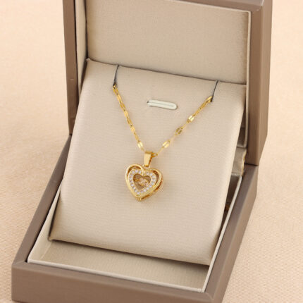 Double-layer Love Necklace With Rhinestones Titanium Steel Pendant Fashion Jewelry Woman Valentines Day Gift